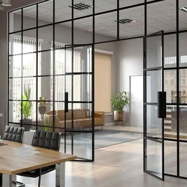 The frames use aluminum or steel. So despite being extremely thin, they are strong as well. You can go with single or double glazing depending on whether you need soundproofing. They work great when you want to section off areas but do not want to lose that open feeling. Most installations do not need major structural changes either. You get ample sunlight in your space but also have soundproof private cabins without walls eating up your floor space.